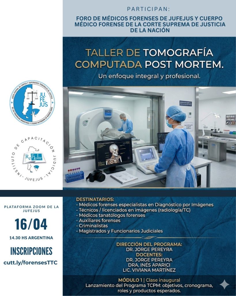 Desde JUFEJUS/REFLEJAR invitan a participar del Taller de Tomografía Computada Post Mortem que tendrá lugar a través de la plataforma Zoom de JUFEJUS el jueves 16 de abril a las 14:30h (Arg.)