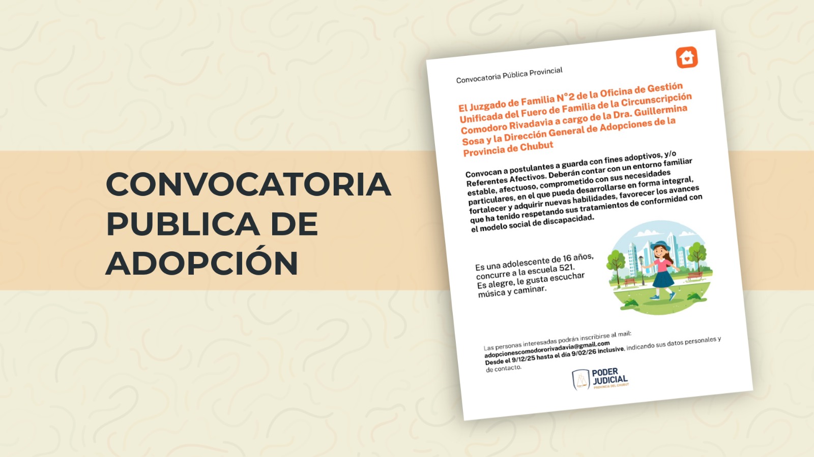 El Juzgado de Familia N° 2 de la Oficina de Gestión Unificada del Fuero de Familia de la Circunscripción Comodoro Rivadavia, a cargo de la Dra. Guillermina Sosa y la Dirección General de Adopciones de la Provincia de Chubut