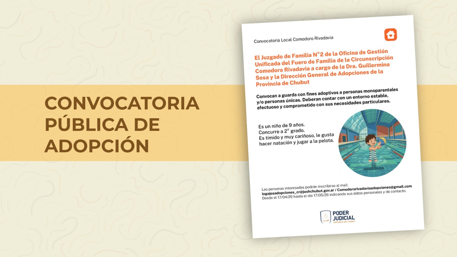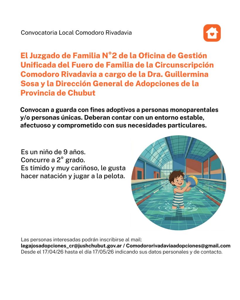 El Juzgado de Familia N° 2 de la Oficina de Gestión Unificada del Fuero de Familia de la Circunscripción Comodoro Rivadavia a cargo de la Dra. Guillermina Sosa y la Dirección Provincial de Adopciones de la Provincia de Chubut