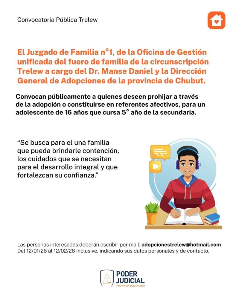 Adopciones: Convocatoria Pública Local (Trelew)