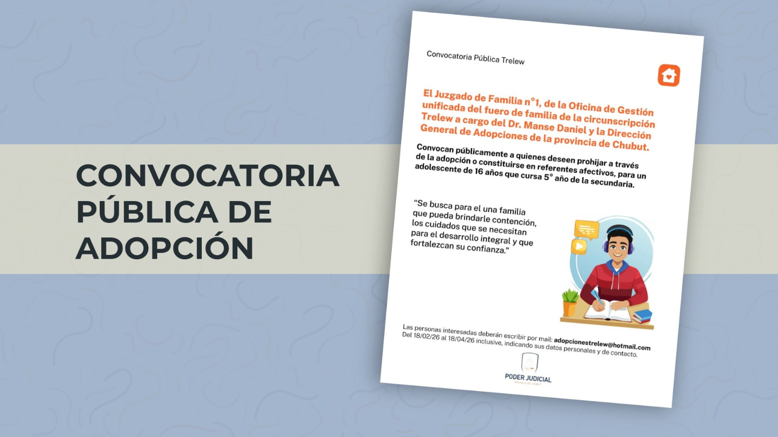 El Juzgado de Familia N° 1, de la Oficina de Gestión Unificada del fuero de familia de la Circunscripción Judicial Trelew, a cargo del Dr. Daniel Manse y la Dirección General de Adopciones de la Provincia del Chubut