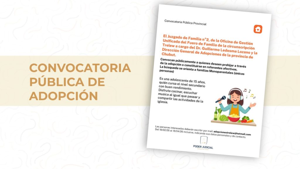 El Juzgado de Familia N° 1, de la Oficina de Gestión Unificada del fuero de familia de la Circunscripción Judicial Trelew, a cargo del Dr. Daniel Manse y la Dirección General de Adopciones de la Provincia del Chubut