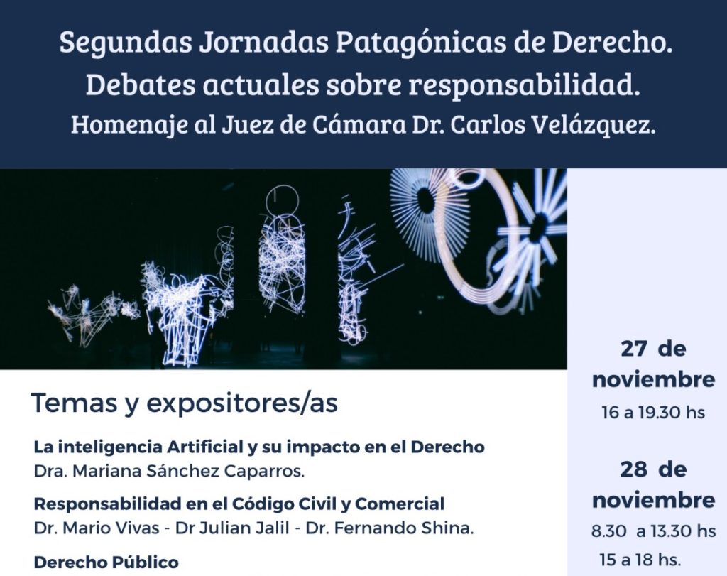 En esta oportunidad, la disertante destacada es la Dra. Mariana Sánchez Caparrós, Relatora del Superior Tribunal de Justicia de la Provincia de Tierra del Fuego. Durante las jornadas se tratarán temas de Derecho Público, Derecho de Familia, Derecho Procesal, Discriminación y violencia, Responsabilidad en el Código Civil y Comercial, Responsabilidad en Entornos Digitales, y Administración del patrimonio de los herederos menores de edad durante el sucesorio. El programa de las Jornadas se puede descargar haciendo clic aquí.