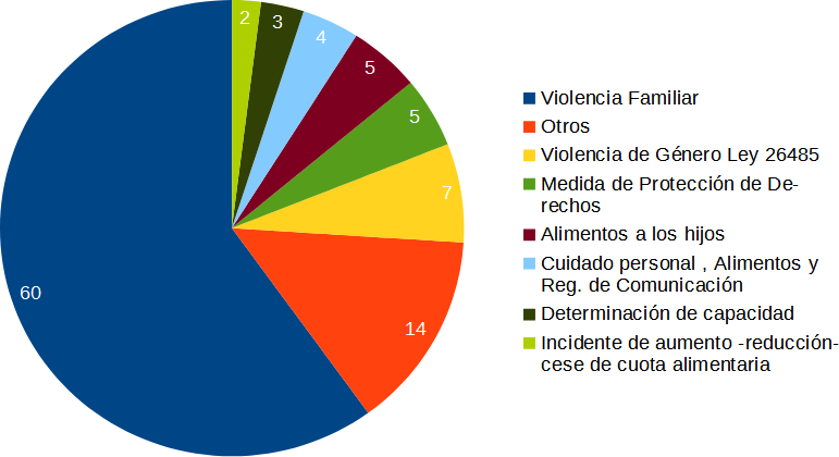En todos los equipos se mantiene una tendencia constante: la demanda principal continúa vinculada a intervenciones en contextos de violencia familiar y de género, seguida por causas relativas a regímenes de comunicación, cuidado personal, alimentos y medidas de protección. La complejidad de las situaciones abordadas ha aumentado, evidenciando una sobrecarga estructural que impacta en los tiempos de respuesta, recursos humanos y el desgaste emocional del personal interviniente.