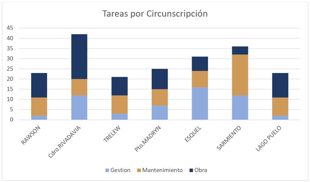 La estructura del informe se organiza por circunscripción y detalla las principales tareas de mantenimiento preventivo y correctivo, las obras de refacción y adecuación funcional, los proyectos de ampliación y modernización y las gestiones administrativas y técnicas necesarias para su materialización.